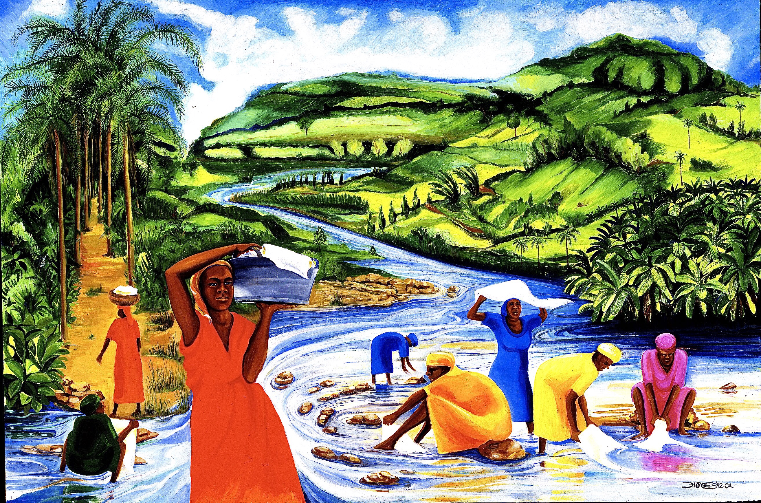 Painted at Los Angeles Studio, 1993 Original in the collection of Vilma Thomas, Original oils on canvas 32×46” Published by Caribbean Art as a Serigraph in 1996