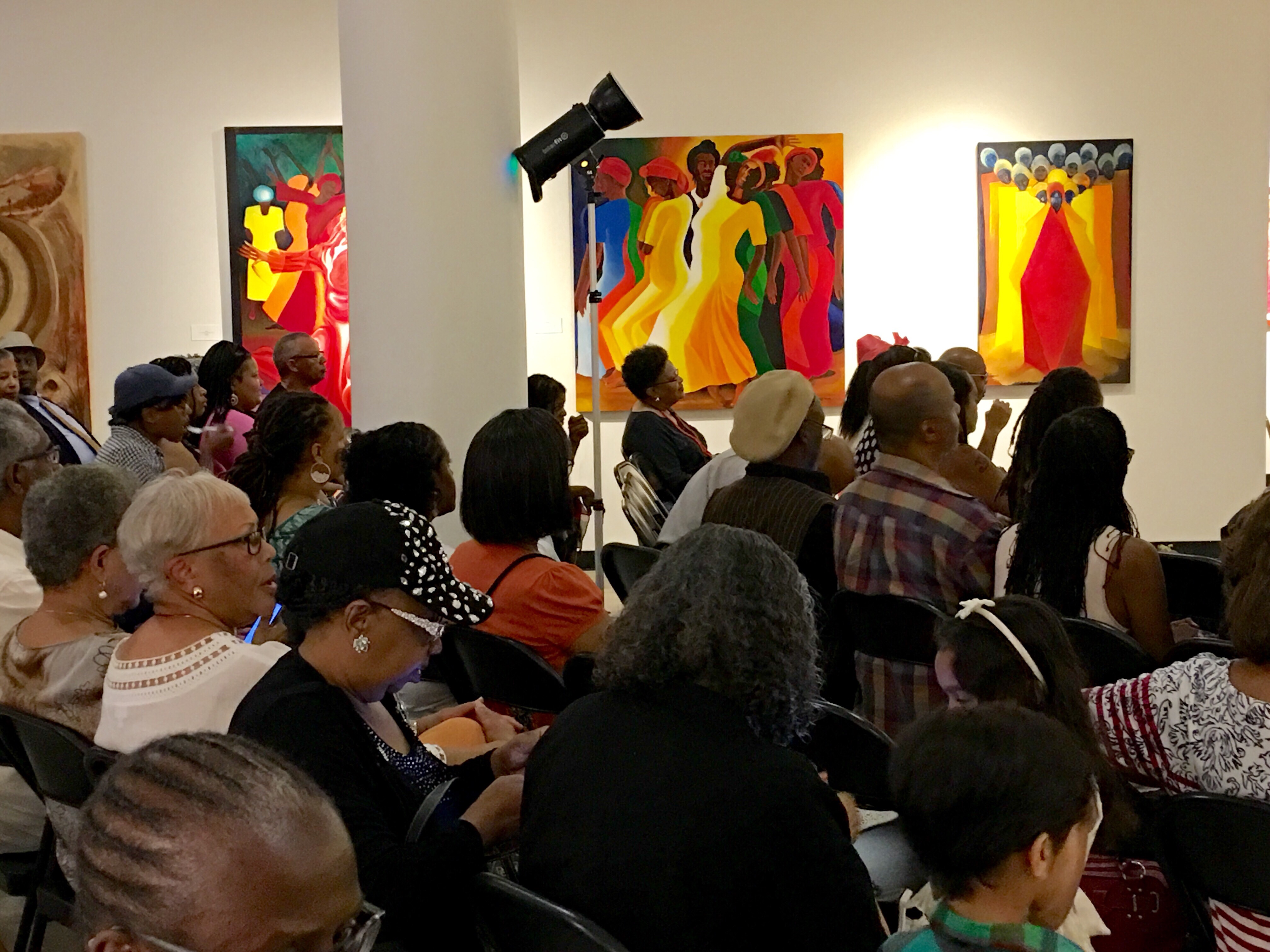 The presentation will juxtapose two of Hoyes’ defining methodologies. His “Rag Series” is a spontaneous technique, using a rag laden with ink, cast onto paper as a fisherman would cast his net in the sea. When lifted a print remains suggesting and delineating forms, mass and movement. Hoyes then adds details that further lift the imagery into compositions with vitality and power. In contrast, his popular “Revival Series” reflects the vibrancy of his Jamaica roots in living primary colors. Hoyes conveys rhythmic movement, deliberate intensity and spiritual forwardness that splashes across the canvas.
