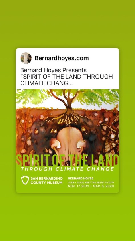 Visit “Spirit of the Land Through Climate Change” at http://bit.ly/BERNARDHOYES. For more information about Bernard Hoyes visit www.bernardhoyes.com. For information about San Bernardino County Museum visit www.sbcounty.gov/museum or call (909) 798-8608. The museum is located at 2024 Orange Tree Lane in Redlands.